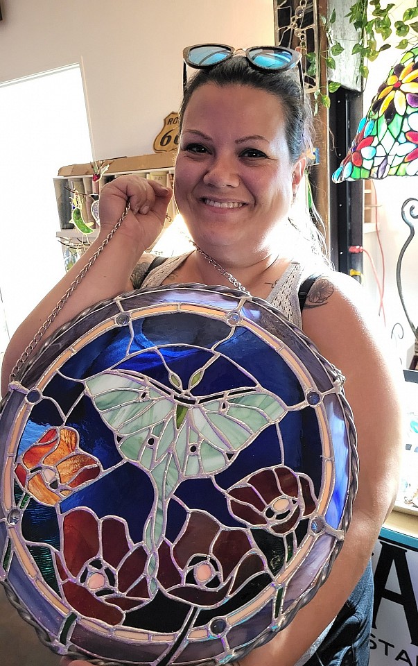 I've been doing stained glass for 10 years, started as a hobby when the kids went off to college, then when I retired after working a corporate job for 40 years, the word got out, and somehow my little hobby has organically grown where now I have my own studio to work in and teach both mosaic and stained glass classes in Bartlesville. It keeps me social since I retired, and I've met some of the most wonderful people, many who have become great friends.